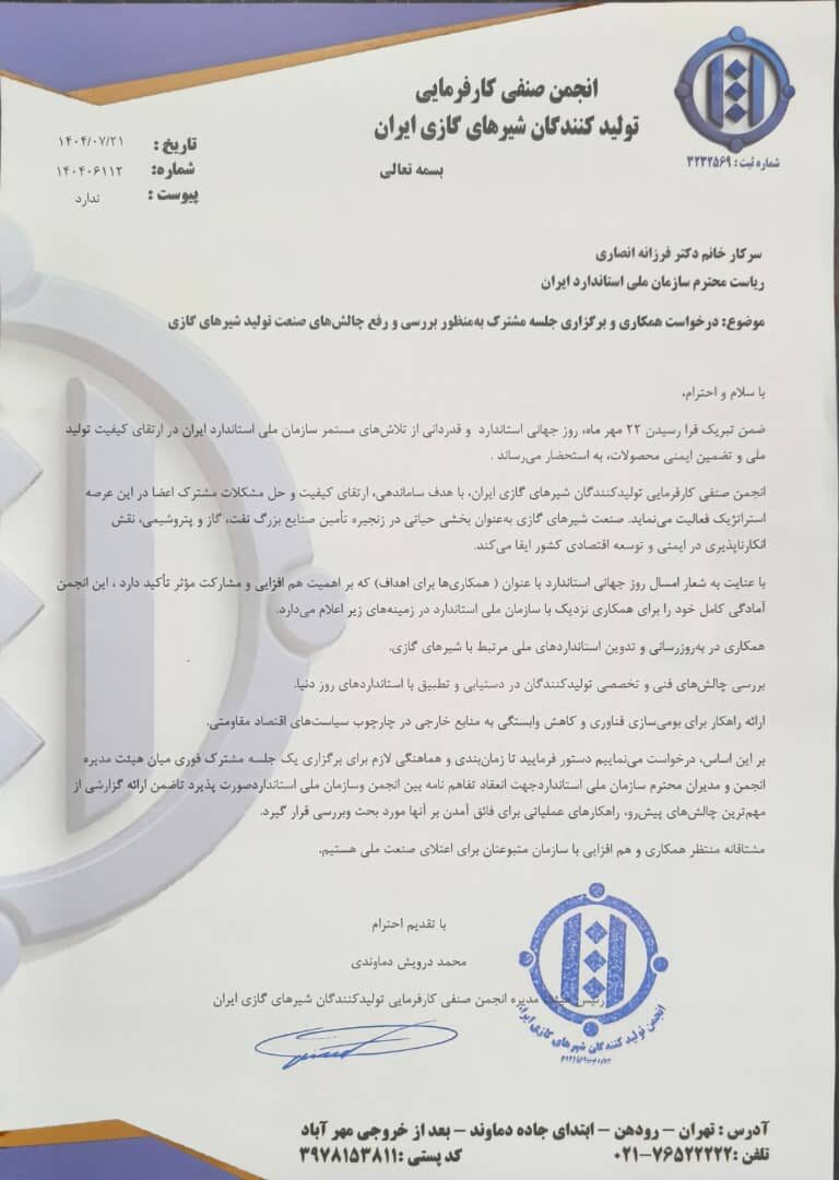 لزوم همکاری نظام مهندسی و استاندارد برای نظارت دقیق بر تولید شیرهای گازی